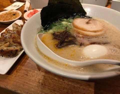 人气拉面店,店面不大,装修上是浓郁的日式风格,进店就能闻到扑鼻而来的香味。白丸拉面和赤丸拉面最受欢迎,白丸拉面用白碗装,面汤很浓郁,强火炖出的豚骨溶出骨胶,混于汤汁,吃后却不觉得油腻。赤丸拉面以红碗装,一半原味汤底,一半黑色调味汤底,非常独特。桌子上有免费小菜可以取,调料种类也很齐全。