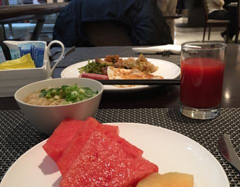 入住酒店时吃的早餐,品种真心不多,口味还算可以,并不偏咸(北方菜一般都偏咸,但这里可能考虑老外比较多吧,口味做淡了一些),服务中规中矩。