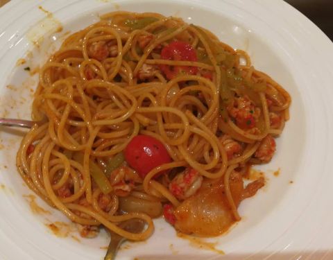 又点了份小龙虾意面,有点辣了,但是依旧很给力。