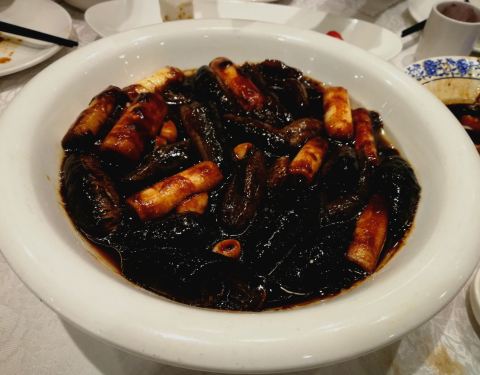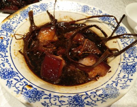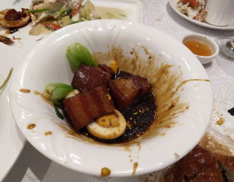 菜肴口味是不错的,扎肉很入味,元宝虾也很好吃,葱烤海参量不少的,海鲜泡饭也是招牌菜,就是草头有点老