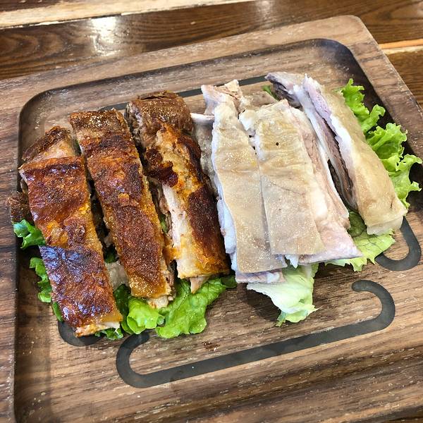 再来说说手抓羊肉和烤肉拼盘。大西北的羊肉的确可以躺赢。手抓羊肉显然不是刚出锅的,微凉的手抓羊肉依然鲜嫩多汁,肥而不腻,香而不膻,温度对羊肉品质的考验,丝毫没在怕的。一点点盐巴的调味,手抓羊肉足够好吃了。稍微来了一点点的辣椒面,都感觉是对这美味的过度包装了。烤羊肉也是好吃,外皮脆脆的,羊肉嫩嫩的,两只交替进行,真的太快乐了。