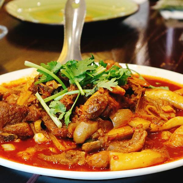 当年溥仪的御膳菜肴,羊肉选用的都是偏瘦的 靖远 羊羔肉,可以说是羊肉中的上上品,还未入口,羊肉浓郁的香气扑鼻而来,入口即是鲜嫩,由于是大火焖制而成,咸香味美的汤汁融入肉中,体会大口吃肉的 西北 风情居然会有极致高潮的满足感,强烈推荐。手抓羊肉