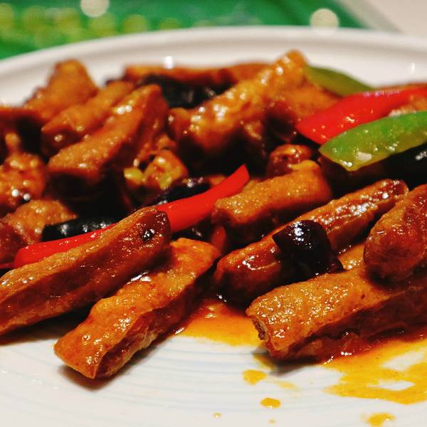 这边的特色菜,我一直不懂这道菜到底是啥,今天终于解惑了,2层煎鸡蛋皮中间放入牛肉末,炸制过后再和青红椒炒过,即可上桌,口感很是软嫩,可以体验一波。炒牛犊肉片(如果没记错,大概就是这个名)