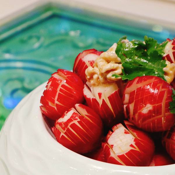 酿皮、椒麻鸡、酱牛肉、椒盐羊肝、水晶时蔬卷、酱豆丝拌豆苗、有机樱桃萝卜、橄榄油大拌菜,凉菜系列主要是解腻,我首推香辣软滑的酿皮、咸香明目的羊肝、脆爽无比的拌豆苗,每一样都可以让人食欲大增,流连忘返。#小吃系