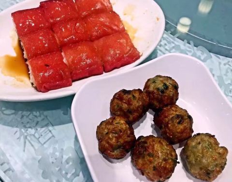 - ...沙红米肠,手撕盐焗鸡挺鲜的,麻球有种小时候的味道,粘牙甜甜的,总体来说口感不错,但是上菜有点慢