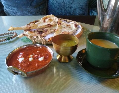 点了咖喱鸡饭套餐主食要的饼 ,然后饮料点的尼泊尔甜茶,很惊喜味道非常赞,环境也是非常漂亮