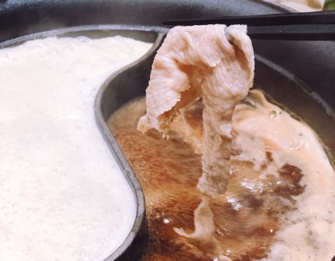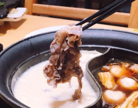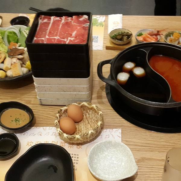 纠结了半天选了豆乳和寿喜锅双拼,这家寿喜锅偏甜,鸡蛋质量一般般。 牛胸肉,松阪猪,牛肩肉,牛舌,都还可以,羊羔肉要了一份就不行了,整个寿喜锅里都是羊骚味,后来其他四盘肉又吃了两轮,羊肉放弃…… 蔬菜...纠结了半天选了豆乳和寿喜锅双拼,这家寿喜锅偏甜,鸡蛋质量一般般。 牛胸肉,松阪猪,牛肩肉,牛舌,都还可以,羊羔肉要了一份就不行了,整个寿喜锅里都是羊骚味,后来其他四盘肉又吃了两轮,羊肉放弃…… 蔬菜啦丸子类的是自取的,丸子刚开始吃还不错,后来觉得丸子的面粉加太多了……