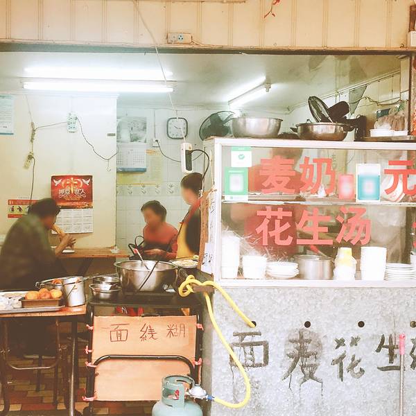 被种草了好久亚本花生汤,终于来打卡了,门面小小破破烂烂的,妥妥一家市井小店。 店内主要售有麦奶、花生汤、面线糊,还有韭菜盒、炸枣等小食。 点了一杯麦奶带走,店家从锅里盛起,热气腾腾倒进杯里,一整杯...被种草了好久亚本花生汤,终于来打卡了,门面小小破破烂烂的,妥妥一家市井小店。 店内主要售有麦奶、花生汤、面线糊,还有韭菜盒、炸枣等小食。 点了一杯麦奶带走,店家从锅里盛起,热气腾腾倒进杯里,一整杯下肚,肠胃非常舒服,麦香十分浓郁,甜而不腻。 - 甜度比花生汤低。可想而知的香尤其有芝麻的加入。不算特别稠一点点像之前武汉喝过的糊米酒只是这个没有酒