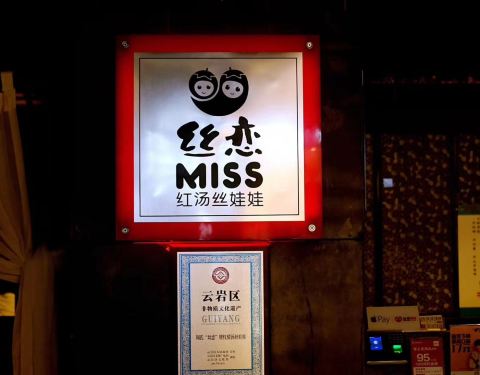 丝恋红汤丝娃娃。环境非常的好。现在的店址是以前的店址往前一些。就是生意太好了,每次都要去排很长的队。但是味道真的很好,特别是酸汤地道。
