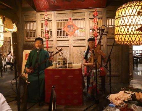 环境:装修很有特色,还有苏州评弹听。 服务:服务员很客气,不错。 口味:烧鸭包太好吃了,盐水鸭做得有汁水,烧鸭也好吃,美龄粥清单适中。