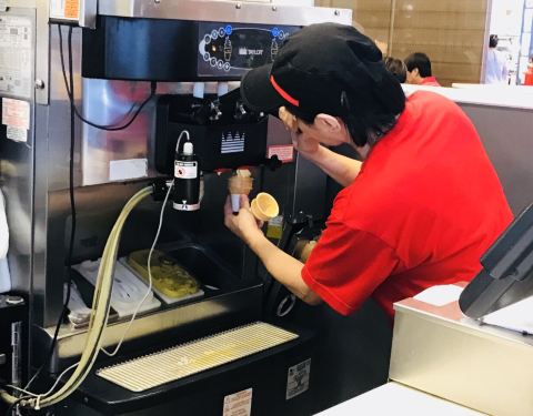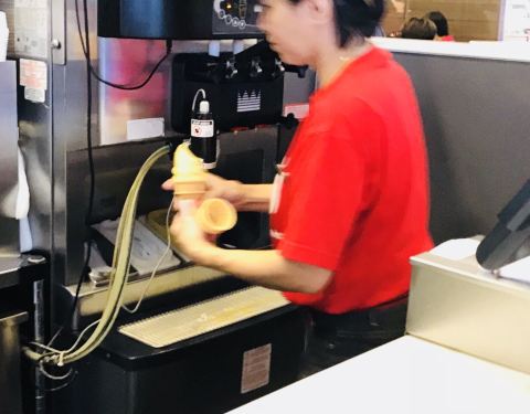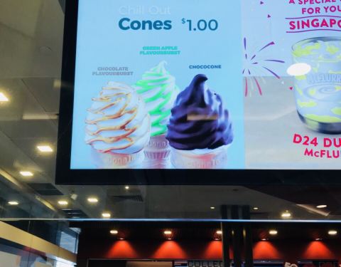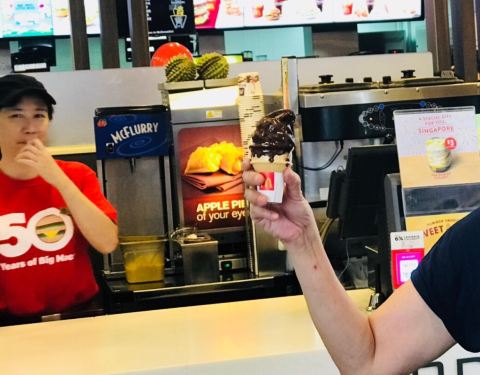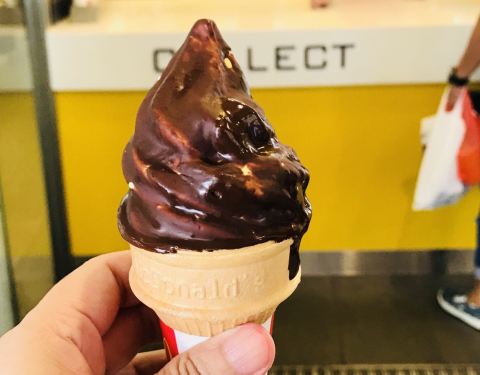 玉蜀黍巧克力冰淇淋是新加坡麦当劳的最新口味冰淇淋。在这之前的香蕉口味冰淇淋很好吃,我现在还很怀念。 小麦的新口味冰淇淋是限量供应,而且不是每家小麦都卖的。午餐时间,我和同事赶快买来尝尝。