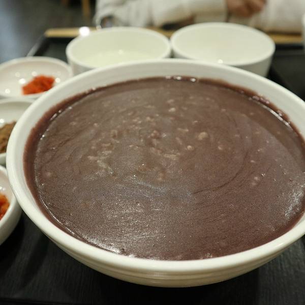 韩国人爱吃炸的辣的,粥算是素静的饮食了。本粥在韩国有多家分店,明洞、弘大、新村、景福宫附近都可以看到这家店的身影,想必也是许多游客种草的店。 我之前也记录了这家,不过想着韩国美食那么多,我应该留着肚子吃那些更有当地特色的食物,而不是一碗粥。但是,因为那天时间刚好只够吃一碗粥,又走到这家店旁边,最终还是进来吃了。 他家粥特点就是稠且分量大,两个女生吃一碗半坚决吃不下了。P1-2『明太子鱼豆腐粥』,P3『红豆粥』,都是8500一份,点粥还搭配许多小菜一起端上来。 前者还不错,咸淡适中,海鲜粥好像是推荐率最高的,不过我们没点,听隔壁桌说海鲜粥太咸了味精味重。后者红豆粥竟然也是咸口的好意外呀,里边还加了年糕一舀能拉丝,不过这个属于初尝很新鲜,吃多了会腻的。 搭配的『小菜』好好吃我很喜欢!还有一碗泡菜汤,简直和豆汁异曲同工!