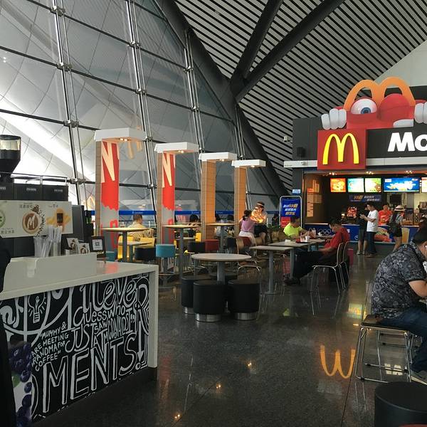 到机场比较早就找个地方吃饭,看到楼下麦当劳是不错的选择啦,这家东西还蛮多的,有套餐有单点,可以自助点单。 安格斯厚牛堡还不错,现做出来的味道不错,牛肉确实鲜嫩多汁,夹了菠萝培根口感更丰富了,吃得很有...