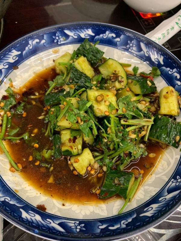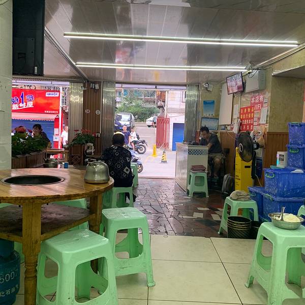位于虎门巷的这家干锅牛肉餐馆曾上过美食纪录片,每次路过都能看到显眼的招牌,今日正好有空探店。 停车:虎门巷是单行线,道路很窄,无停车位,车子可以停在200米外的友谊路地下停车场(6元/小时); 就餐环境:位于居民楼底层的商铺,统一塑料板凳,木质圆桌或电烤炉小方桌,没有装饰,比较简陋;店内有卫生间,但是苍蝇成群; 价格和分量:牛肉、牛筋108元/份,牛黄金128元/份,凉菜15元/份。我们4个成年人要了牛肉、牛筋各一份,一盘凉拌黄瓜,蔬菜免费,勉强能吃饱; 干锅上菜速度很快,从点单到上菜才2分钟。他家算汤汁比较多的汤锅,锅底垫了切成细条的萝卜丝,肉洒在表面一层,蒜瓣、蒜苗、芹菜夹杂其间。先夹取一块牛筋尝味,软糯入味,焖制的时间挺长,绝对好评。牛肉切成小坨,同样也挺入味,有牛肉本身的香味。 凉拌黄瓜用素辣椒面和醋拌制,是贵阳传统的做法,黄瓜香脆多汁,味道不错。 总的来说,他家的味道属于上乘,但是性价比不高。肉类按份卖,不按斤卖,本身就不太合适,一份目测不到一斤,108元的价格挺高。而且多大是一份,没有一个标准。幸好我们四位一人先吃了一碗水果冰粉,不然2份绝对不够。
