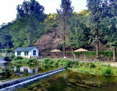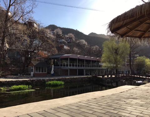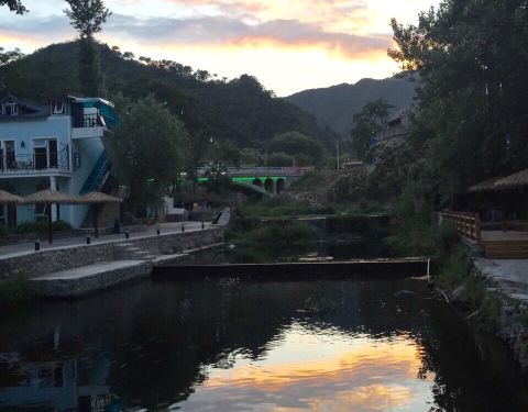 这条沟去了多趟,感觉他家环境最好,山上木屋鸟语蝉鸣,慕田峪就在眼前,山前小溪,身后长城独此一家。烤鱼一绝,野菜、大锅点赞