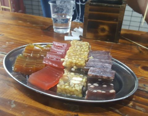 算是不知道怎么回事被导演拉来的吧 出来才注意到是广东省一个非物质文化遗产诶 店铺还挺大的 可以很多人一起坐下来 很有那种文化的气氛 有很多种糕可以卖 大多数是那种需要回去自己蒸的 也没有试吃!!这一点差评...
