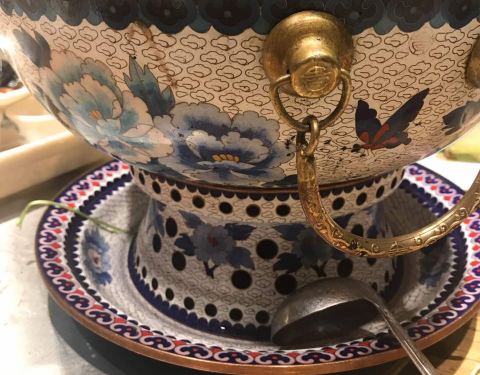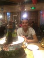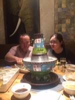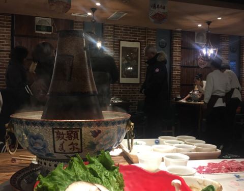 - 传统铜锅涮肉,手切羊肉、肥牛、毛肚味道很好!晚上9点离开时人还是很多