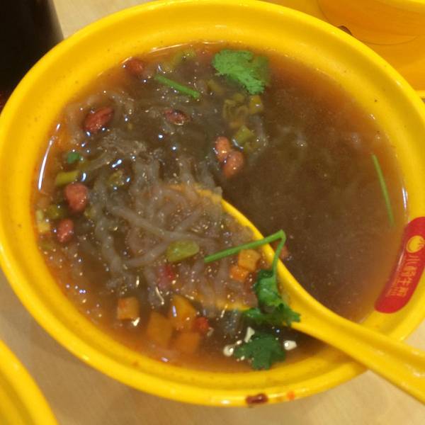 酸酸辣辣,味道不错,粉是薯粉。【鸭血粉丝汤】