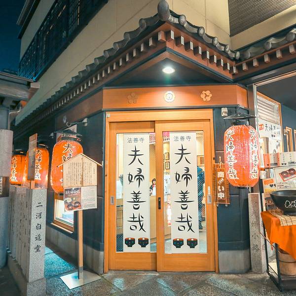 大阪人很爱吃红豆年糕汤,而最有名的一家就是位于法善寺小巷内的夫妇善哉。这家店很小,只有三张桌子。但也不会出现排长队的情况,或许是因为红豆汤吃起来比较快吧,用餐时间不需要很长。夫妇善哉创于1883年,历...