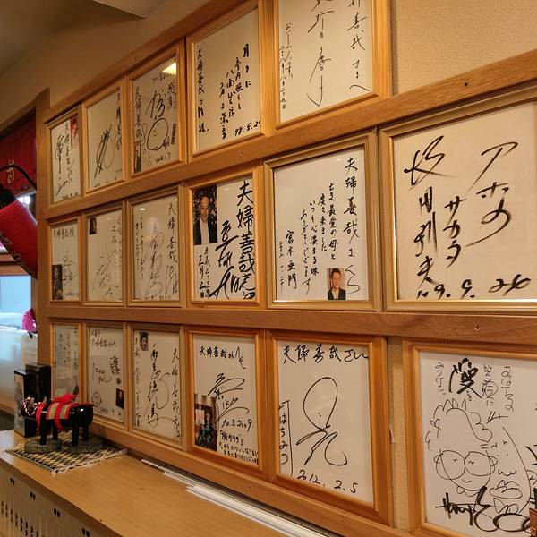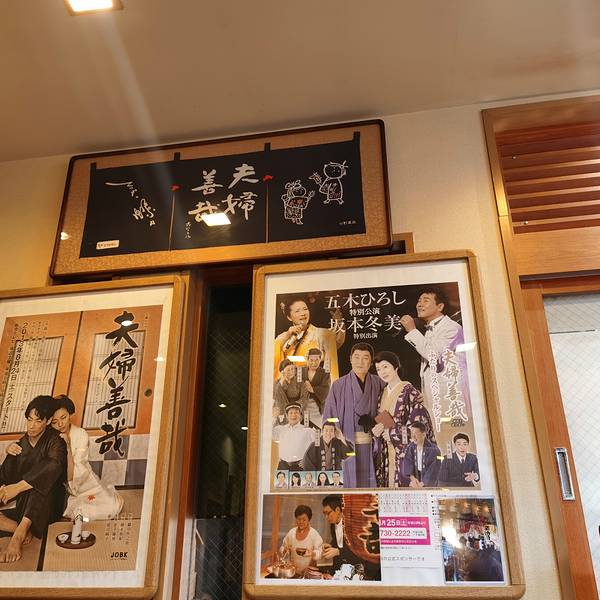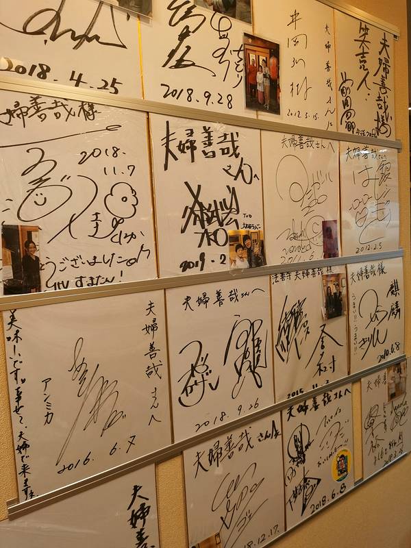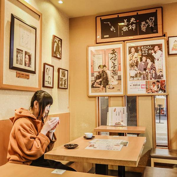 后来在1940年的时候,文豪织田作之助发表了以《夫妇善哉》为名的小说,而且还有由当时很有名的演员森繁久弥主演的同名电影,也同时上映了。小说和电影都提到了这一家红豆汤店,随之便火了起来。在店内展示着第三代的福人形,还有织田作之助的小说《夫妇善哉》的最初版,以及演员森繁久弥的亲笔签名。夫妇善哉的左侧是男性,右侧是女性,一个人吃两碗,这样可以体味彼此的幸福和美满。另一层意思是,与单身一人相比,还是夫妇好。