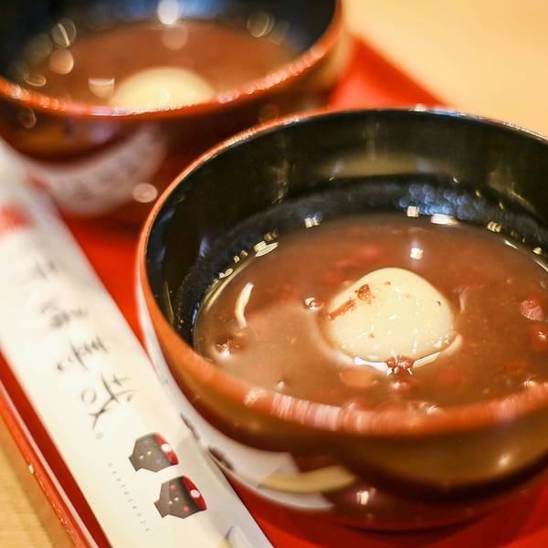 只卖甜品“夫妇善哉”,其实就是红豆年糕汤,味道甜蜜,夫妇两人,男左女右,每人吃一碗,象征夫妻之间幸福美满。单身的人去吃,也是只能吃一份——两碗,说吃完很快就能遇到另一半。而且日本爱情小说《夫妻善哉》里也曾如此描述,最后还被拍成电影。