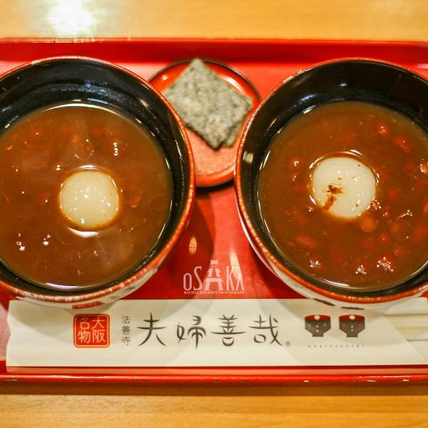 - 法善寺旁的夫妇善哉红豆沙很有名,其实红豆沙不特别,特别的是它的寓意