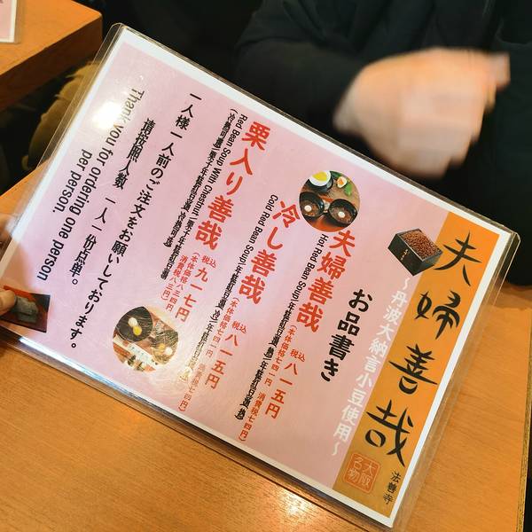 很值得打卡的地方。第一站,夫妇善哉 这就是他的特色,简单。菜单,就是两个点心,但是经营了几十年