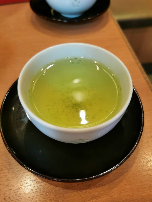 虽然是摆放了两碗,但实际上份量是一碗,每碗只有一半。两个半碗的红豆汤、一片盐海带、一杯茶,这样一份是一套,800円,折合人民币50元。这个价格真心不便宜,都够吃一碗拉面了。