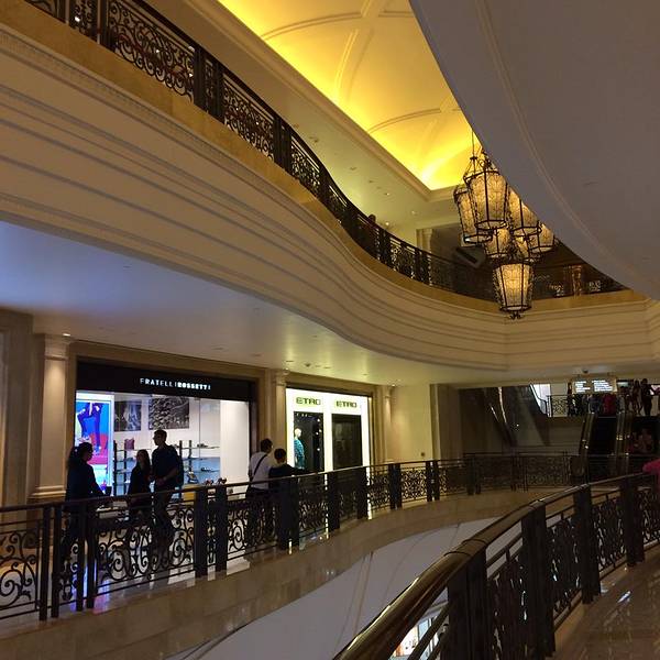 澳门首座奢华购物中心。以古典优雅的欧式装饰为主, 这里展示了超过 160 项世界知名品牌。