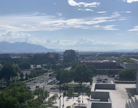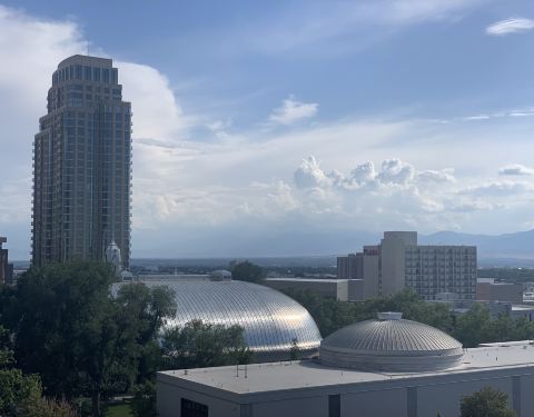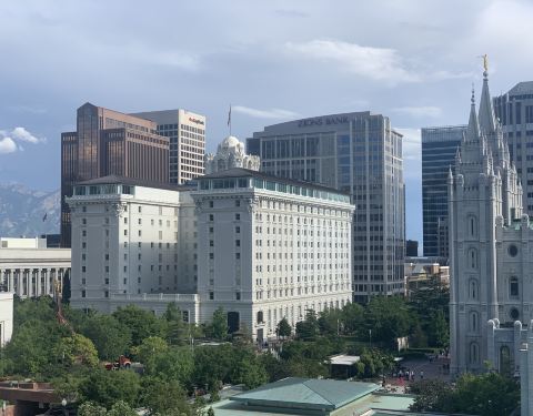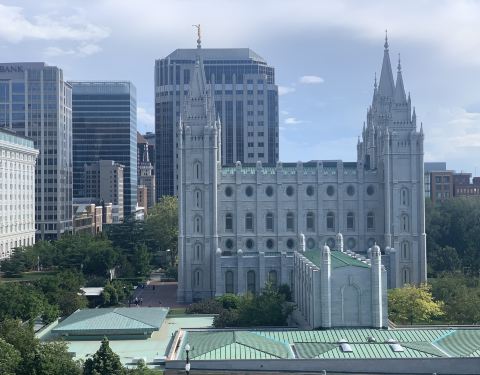 盐湖城圣殿是盐湖城的标志,也是全世界摩门教徒的好去处,正式名称叫做末日圣徒圣殿,建于1853年,完工于1893年,是耶稣基督后期圣徒教会全世界130多个圣殿中规模较大、非常有名的一个,是犹他州盐湖城占地10英亩(40,000平方米)的圣殿广场的核心。 盐湖城圣殿是哥德式典雅古朴的大建筑物,尖顶圆柱,十分宏伟壮丽,塔形大门由四根柱子连成,门顶上站立看一只老鹰的塑像。殿顶的金人是传说中给予创教者启示并送来金页圣经的天使Moroni。 盐湖城圣殿和普通教堂的较大分别是平时只允许高等级的长老进入,一般信徒只有在举行婚礼时才能获准入内。