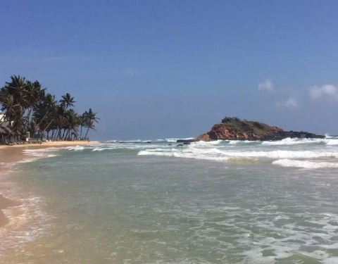 美蕊沙是斯里兰卡南部三大海滩之一,这里月牙般的海滩仍然保留着原始自然的韵味,阳光明媚,椰林阵阵,碧海蓝天。海滩特点美蕊沙主打的是原始,静谧,在这里您找不到其他海滩上所有的那些连锁酒店,很适合发呆,无所事事的和恋人一些在沙滩上散散步、阅读或者聊天。观鲸这里也是斯里兰卡理想的观鲸之地,每日清晨随着船队出海,是非常难得的人生体验。海滩东西端介绍米瑞莎海滩的西端是非常迷人的一片海滩,两边排列着客栈,沿着沙滩还有很多简单的咖啡馆,它们与主干道隔离开来。东边沙滩呈曲线围绕,正好与加勒—马特勒路上的喧闹声互相辉映。在沙滩尽头还有一个供众人拍照的地方,它是一个沙滩延伸出的小型半岛,可以在潮落时走过去。