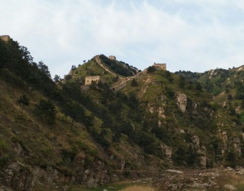 乌龙沟乡附近的长城很多很多,绵延在不同的山脊上,随时抬头就能看到,据说是没有修缮的明长城中保存最完好的,但敌楼内的楼梯似乎被拆除了,我们经过的几个敌楼都没法到楼上去。 乌龙沟的长城就是野长城,零零星星有些游客,附近应该有很多可以爬上去的小路,我们找路途中很幸运地碰到了一个人,我们跟着他的车穿过两个村子、翻过一道山梁,一直开到长城脚下,他们两口子经营着一个农家小院,从小院爬到长城上不到20分钟,其它的地方要将近2个小时,哎,太幸运了,下山后我们直接在他家吃了农家饭。