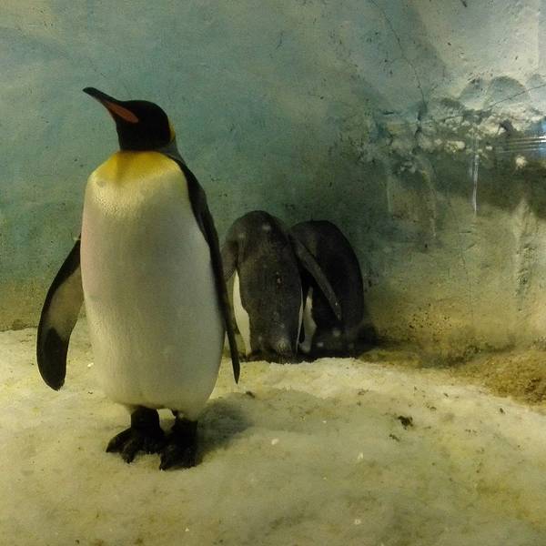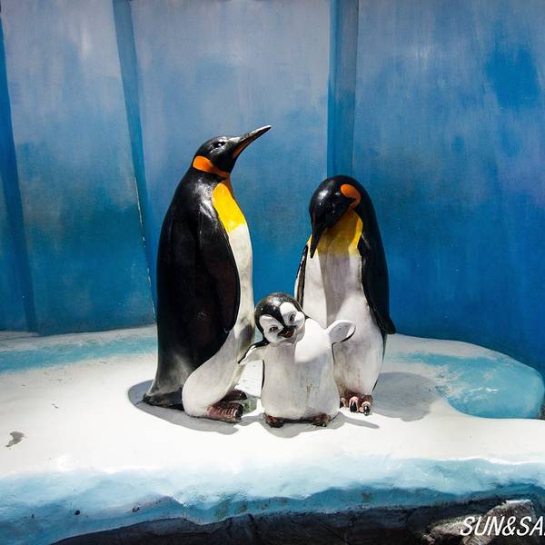 没事在家学学动画片里的小企鹅走路,这下见着本尊了!萌神!大哥,你在寻找什么呢?爱水的孩子,果断掠过去,跑去了池边 。小立可手里微弱亮光的小海豚玩偶,貌似吸引了小企鹅的注意力。看看看,它来啦。不要以为这里的小企鹅是装模作样的有几只哦,真的是比较多啦!大大小小的小企鹅,或在岸上休息,或者水里游泳,是相当热闹的企鹅家族呢。小立可,我们拍张照片吧!
