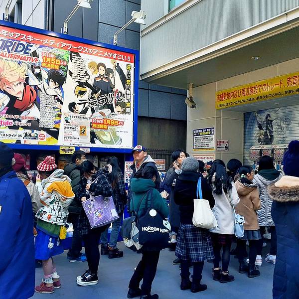 二次元圣地,从早上一开门就排起大队,为了要领阿松的周边,我也是到了那儿才认识的,真的是超火!里面大约七八层,全是各种卡通漫画,书、DVD、周边产品、声优产品等等等等,反正我认识的不多,但是貌似这里还算是动漫迷的必到之地,来看看也是不错的,帮老公买海贼王周边可惜海贼王的东西并不多。价格都是相对来说比较贵的,买了一小罐海贼王饼干,就七八十,不过那个饼干桶着实比较好看, 还买了一下文具啊什么的。阿松的产品里面还有个专门售卖的区域,居然还拿号进入,我们上午去的,号居然都发完了,想买都买不到,可见日本人对漫画多痴迷疯狂。各种DVD 书 漫画 钥匙链 摆件 文具 玩偶 贴花 食品等等吧,每个门类几乎都包含了,日本在这方 面的市场着实很大,经常看到有日本妇女提着买菜包,来寻找动漫商品,一手提着菜,另一手买买买~ 或者推着婴儿车的妈妈,慢慢的逛着,挺好玩的!声优产品众多,喜爱漫画的一定都不陌生,看样子也有不少帅气的,不过这方面我不太懂,只是看个热闹。楼层很高,每层的面积也挺大的,有楼梯也有电梯,电梯人很多,需要排队,大白天的去每趟电梯都会超重,可想而知人有多多了吧!门口有不少扭蛋的,这全靠运气了。找到喜欢的动漫,玩几个还是挺有趣。总的来说是动漫迷的宝地,想买什么都有~而且都是最新的,如果想买经典动漫,可能就得去秋叶原二手店了。