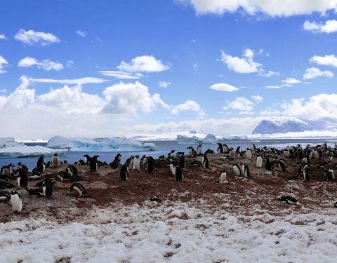 半月岛是南极洲的一座大岛,半月岛上终年冰天雪地,生活着大批的企鹅