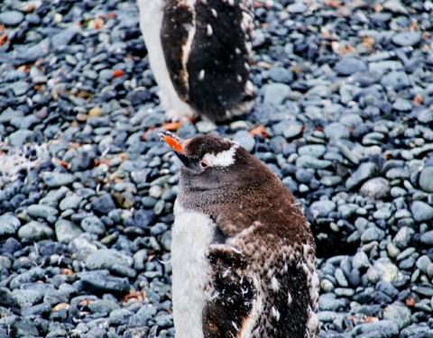 奇妙的是,居然有两种毛色的白眉企鹅相伴而行。一种棕色,一种黑色,乍一看还以为是阿德利企鹅呢半月岛海滩上的白眉企鹅 不同于岛的东南我们登陆之处的帽带企鹅,科考站下方海滩上生活着的是白眉企鹅,他们在岸边远眺着大海,若有所思。 奇妙的是,居然有两种毛色的白眉企鹅相伴而行。一种棕色,一种黑色,乍...半月岛海滩上的白眉企鹅 不同于岛的东南我们登陆之处的帽带企鹅,科考站下方海滩上生活着的是白眉企鹅,他们在岸边远眺着大海,若有所思。 奇妙的是,居然有两种毛色的白眉企鹅相伴而行。一种棕色,一种黑色,乍一看还以为是阿德利企鹅呢。好像棕色的更典型些,黑色的该不会是老趴着给晒的吧[呲牙] 展开