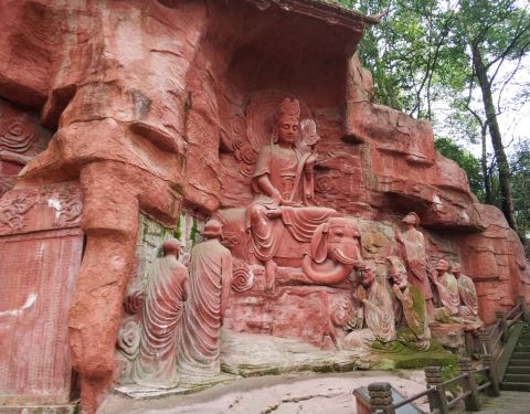 ”不错,峨眉山的最高海拔达到了3099米,比三山五岳都要高,当之无愧的王者晚餐之后,大家商议着既然要体会这三种不同的感受,那就从山下漫步开始吧。从我们入驻的峨眉大酒店开始,我们沿途经过了峨眉新十景中的“第一山亭”,“摩崖石刻”和旧十景中的“圣积晚钟”。在夜色慢慢降下来之...晚餐之后,大家商议着既然要体会这三种不同的感受,那就从山下漫步开始吧。从我们入驻的峨眉大酒店开始,我们沿途经过了峨眉新十景中的“第一山亭”,“摩崖石刻”和旧十景中的“圣积晚钟”。在夜色慢慢降下来之即,第一亭的灯光也亮了起来,通透明亮,暖照人心。旁边的一副对联更是道出了峨眉群山的至高地位,“普贤者佛之长子,峨眉者山之领袖。”不错,峨眉山的最高海拔达到了3099米,比三山五岳都要高,当之无愧的王者。峨眉山是供奉普贤菩萨而闻名的,这座山的很多元素都和普贤有关,就拿大象来说吧。从进景区,到金顶,你很容易发现这种大象雕塑随处都有。象,乃普贤尊者的坐骑,所以峨眉之气,聚在普贤! 展开