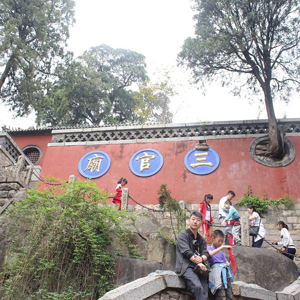 三官庙位于泰山经典步行路上,从红门进的这条步行道上。 最有意思的就是这颗从“三官庙”三个大字旁墙上长出的大树,笔直向上。