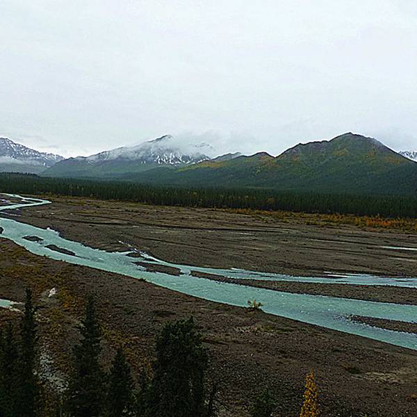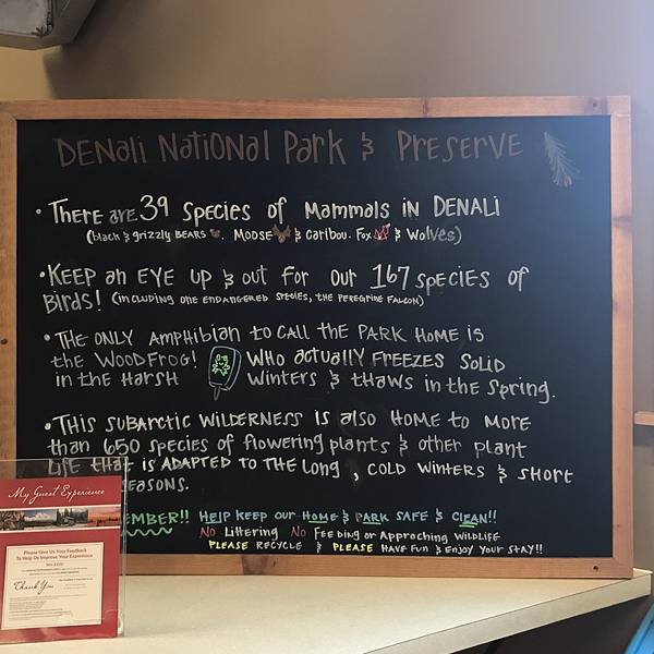 下午一点,我猜晃晃荡荡开离Anchorage,一路向北去Denali。沿途风景特别美,有可以远眺Mt. Denali的south port和north port,后面才知道Mt. McKinley当地人也叫Mt. Denali. 开高速的时候留意看照相机标志的蓝色提示牌就不会因为开太快而miss掉经典。走走停停快天黑才到,也有晚上10点钟了。虽然是在当地租的GPS,但是Denali National Park附近hotel的具体地理位置搜不到,快到Denali之后有开始修路,走走停停,Salmon&Bake要路过Denali National Park Rd, 因为手机google也不准,来来回回走了三趟才找到。