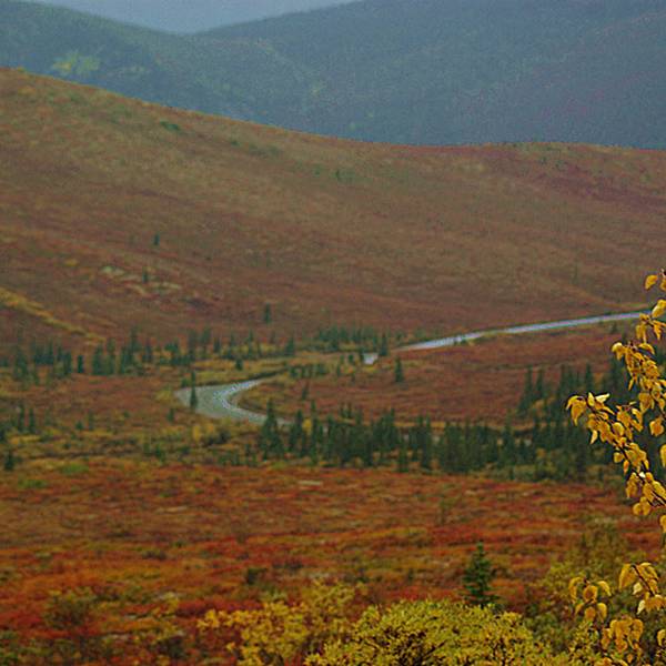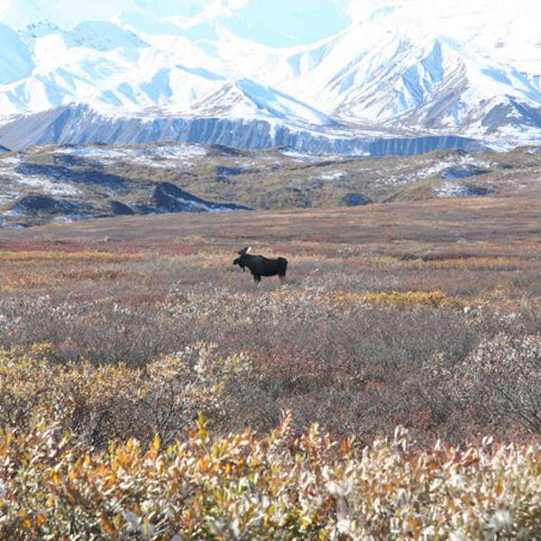 在迪纳利国家公园Denali National Park的时候,特地找了这家有特色的家庭旅店。艺术家也喜欢隐居山林,在这里设计了极具特色dome做自己的家,现在又改成了家庭旅馆,室内的野生动物标本和巧妙的设计都让人印象深刻。晚上可以透过天窗看星星和极光。迪纳利国家公园:秋冬交接的季节,满山像油画颜料没调开就上色的浓黄重绿加上些许蓝莓的深红叶片,远处则是黑山白雪做背景。深入到wonder lake迪纳利国家公园里的野生动物给大家带来的不少乐趣。这个时候专业的摄影器材就发挥出巨大优势了,上几张同行的前辈拍摄的野生动物。