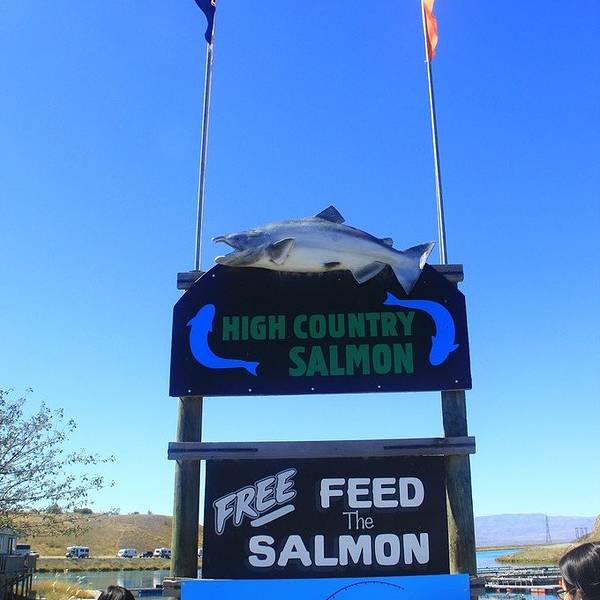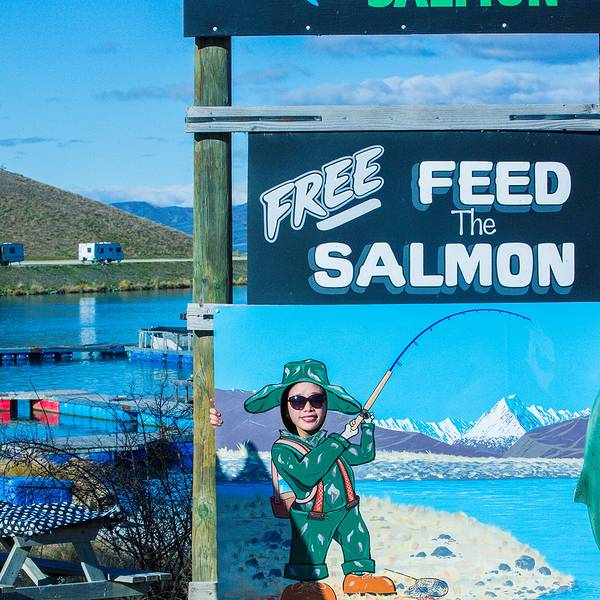作为资深三文鱼爱好者,三文鱼场自然是必去的啦。鱼场离Motel很近,十几分钟就到了。钓鱼去咯。High Country Salmon:说是鱼场,其实就是几个鱼塘,三文鱼都是喂饲料长大的。肉质一般,有点偏硬,不如大洋里的三文鱼那样绵软,好的三文鱼应该是略带香甜、入口即化的。这就是职业吃货的素养,哈哈。
