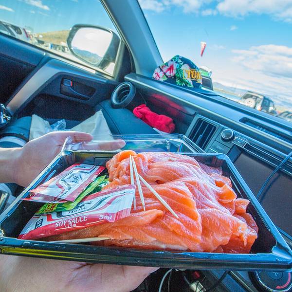 - 感觉吴主编一副想让我把这辈子的三文鱼都吃够的样子,霸气地带我停车买鱼