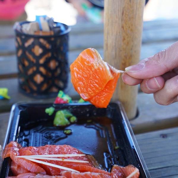 早上九点半我们驱车大摇大摆的离开“我家”,途经路过特威泽尔的high country salmon。感觉吴主编一副想让我把这辈子的三文鱼都吃够的样子,霸气地带我停车买鱼。