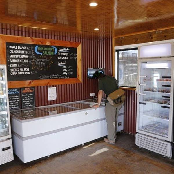 从小镇出来,前行没多远就到了著名的高山三文鱼场High Country Salmon。