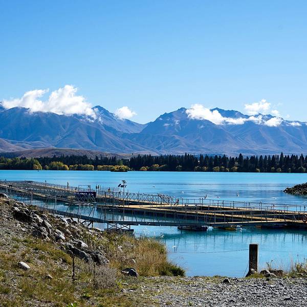 景点:素有“蓝色牛奶湖”之美誉的Lake Pukaki位于三文鱼养殖场十分钟的车程
