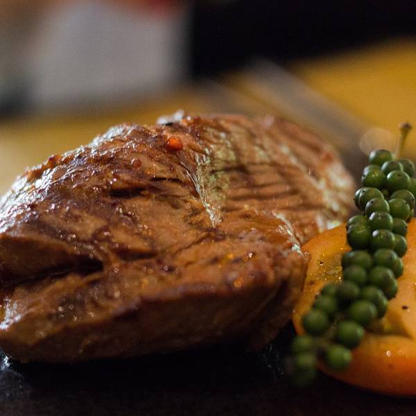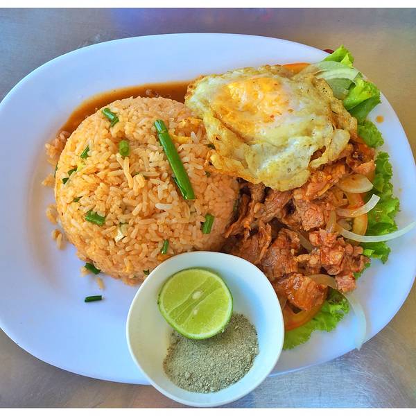 在酒店安顿好之后,我们赶紧要出门觅食了,大众点评在暹粒还是挺好用的。在一条看起来很烂的小路上,我们找到一家整体环境装修都还不错的餐厅,这块放在高温石板上的牛肉味道还不错,切下一片,里面的肉还比较生,如果不喜欢这么生可以直接在高温的石板上烫一下。