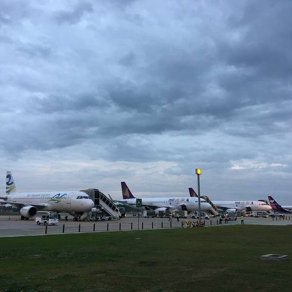 - 过来的时候是深夜,未能好好看看机场的景观。下午茶之后,我们乘车前往吴哥国际机场。来往的飞机倒是不少