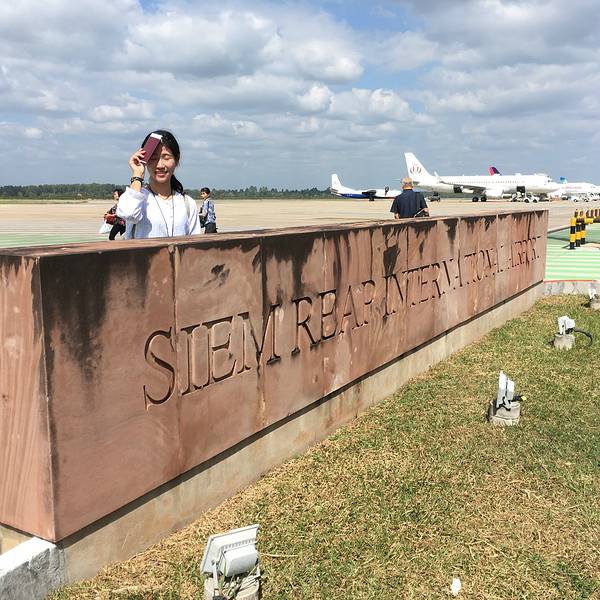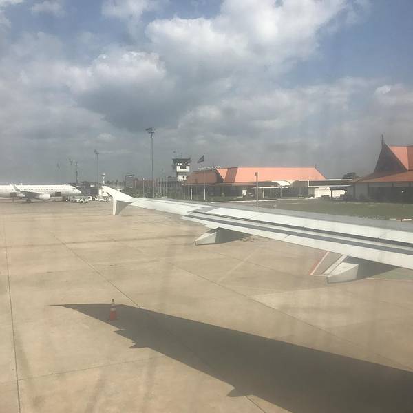过来的时候是深夜,未能好好看看机场的景观。下午茶之后,我们乘车前往吴哥国际机场。来往的飞机倒是不少