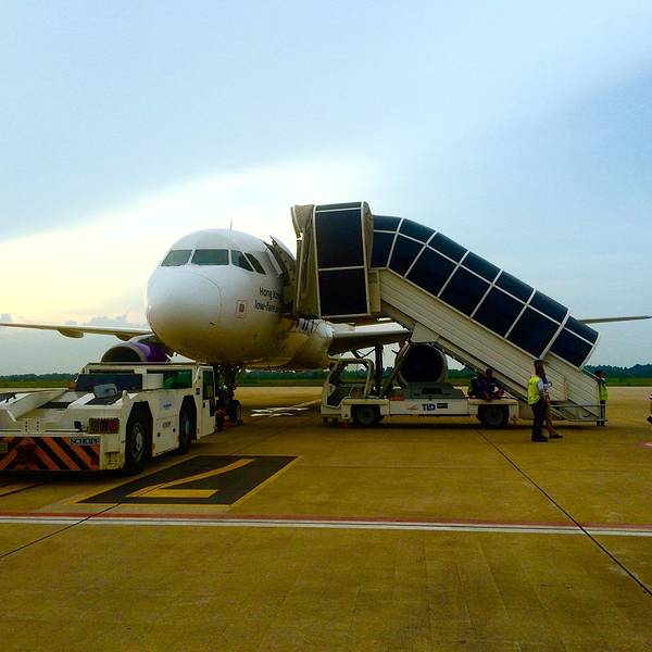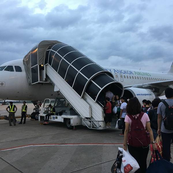 同国内很多支线机场一样,吴哥机场很小,没没有登机桥,所有航班都靠步行或者摆渡车登机、下机。放眼望去,我们乘坐的南航A321是本场最大的机型,远处有几架天空吴哥航空的飞机。作为东南亚一个热门的目的地,中...同国内很多支线机场一样,吴哥机场很小,没没有登机桥,所有航班都靠步行或者摆渡车登机、下机。放眼望去,我们乘坐的南航A321是本场最大的机型,远处有几架天空吴哥航空的飞机。作为东南亚一个热门的目的地,中国有约20个城市可以直飞暹粒,还是非常方便的。从机场离开,我们坐了一辆突突车前往酒店,一路上我们对这座东南亚城市似乎没有什么好感,完全就是一个超大的农村既视感,到处感觉都是脏兮兮的,再加上气温高,第一印象并不是特别好。