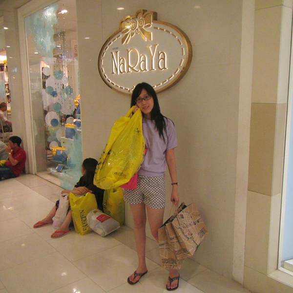 然后逛了下naraya。。。真的不好看。。为什么这么多人买?? 就一个带镜子的小化妆包挺实用,还有个拖鞋不错!!我超喜欢哈哈哈